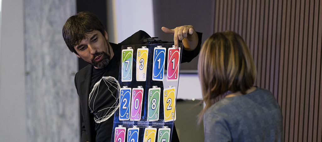 A través de la magia, visitaremos los libros matemáticos más antiguos que incluían entre sus páginas juegos de ilusión. Fibonacci, Luca Pacioli, Giacomo Inaudi, Martin Gardner o Juan Mieg son algunos de los científicos que nos mostrarán cómo sorprender a través de las matemáticas, realizando trucos que fascinarán a los asistentes para después mostrar las matemáticas que les dan solidez y se ocultan detrás de cada efecto.